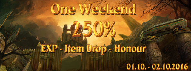 2016 Október 1-2. hétvégén mindenki a következő bónuszokat élvezheti: 250% XP, becsület és tárgy drop.